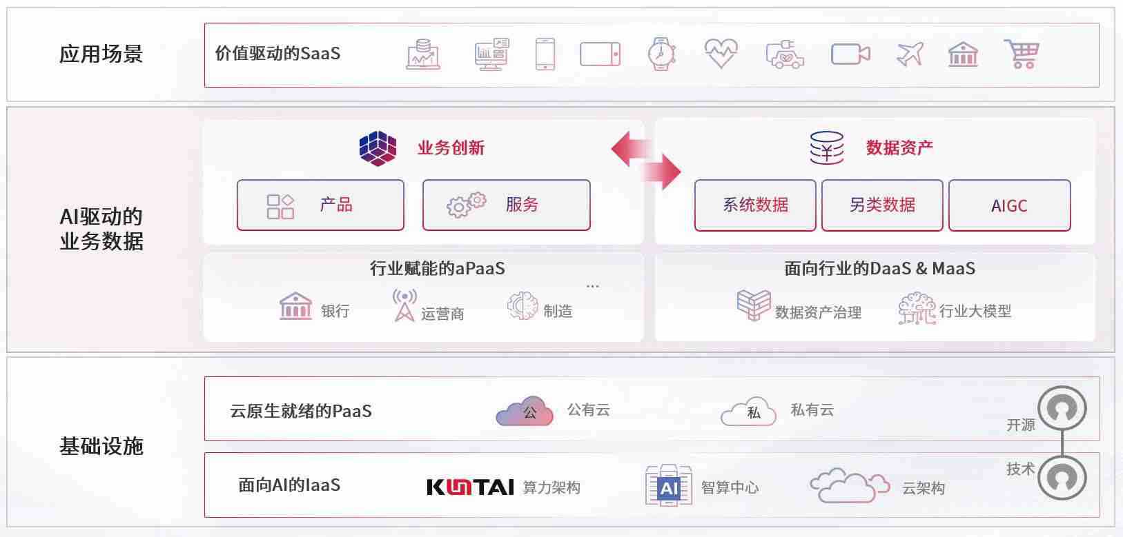 数字时代,,围绕企业数字化转型的关键要素,,,,滕博会数码开创性的提出数云融合战略和技术体系框架,,,,着力在云原生、、数字原生、、、、AI原生和信创产业上架构产品和服务能力,,,为处在不同数字化转型阶段的快消零售、、汽车、、、、金融、、医疗、、、、政企、、、、教育、、运营商等行业客户提供泛在的敏捷IT能力和融合的数据驱动能力,,,,构建跨界融合创新的数字业务场景和新业务模式,,,,助力企业级客户建立面向未来的核心能力和竞争优势,,,全面推动社会的数字化、、智能化转型升级。。。。